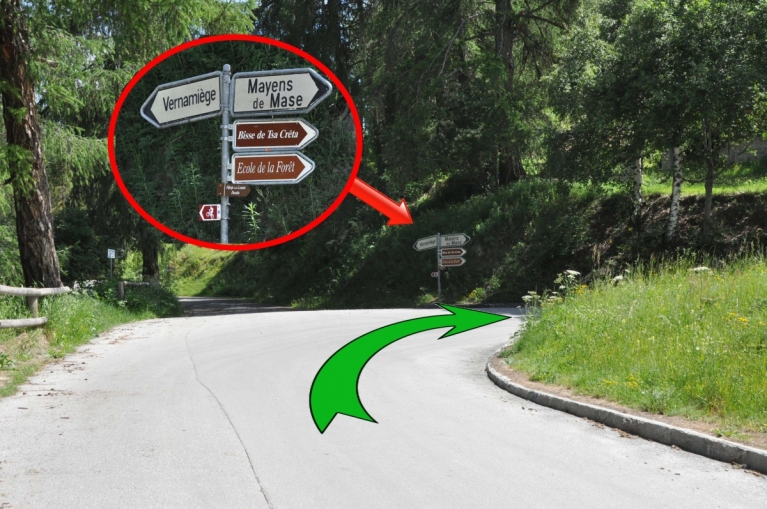 Avoid Mase, after 500 meters turn left to Mayens de Mase